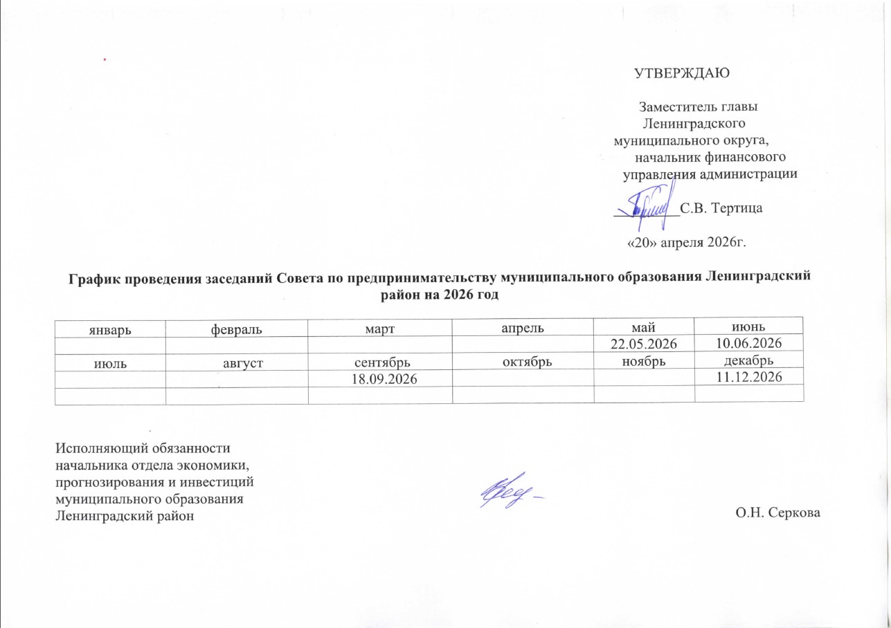 График проведения Совета по предпринимательству на 2026 год